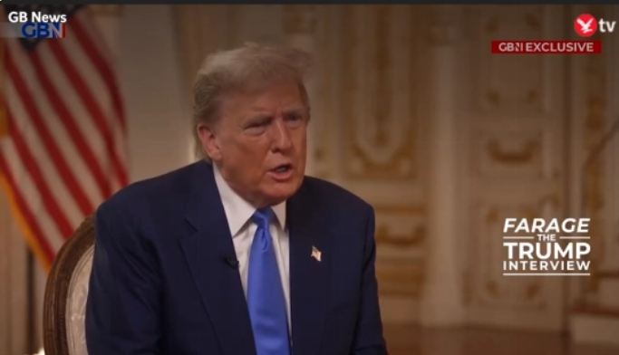 在英媒GBNews當(dāng)?shù)貢r(shí)間19日播出的采訪節(jié)目中,特朗普回答主持人提問 圖自英國(guó)獨(dú)立電視臺(tái)